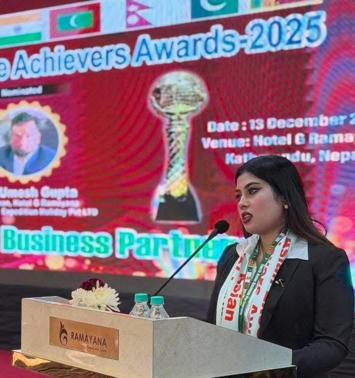On December 13, at an international conference and award ceremony held in Kathmandu, the capital of Nepal, Saima Anika received the prestigious Asian Excellence Achievers Award. This achievement is not only a personal milestone but also a proud recognition of the leadership, capability, and potential of Bangladeshi women on the international stage.
